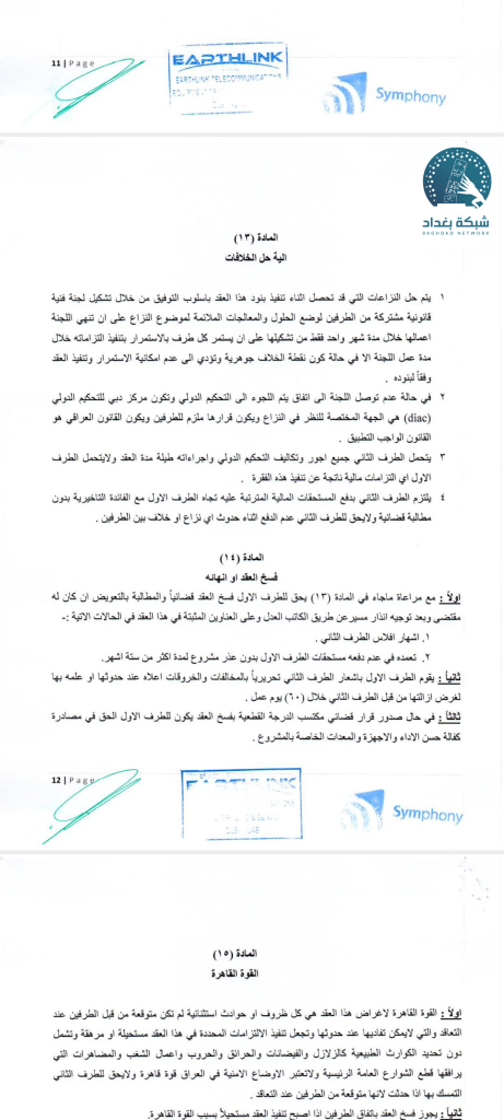 أثار ناشطون في قطاع الإنترنت جدلاً واسعاً بعد الكشف عن عقد موقع عام 2015 بين وزارة الاتصالات العراقية وشركة إيرثلنك، ينص على أن حل الخلافات بين الطرفين يتم عبر التحكيم في دبي بدلاً من داخل العراق.